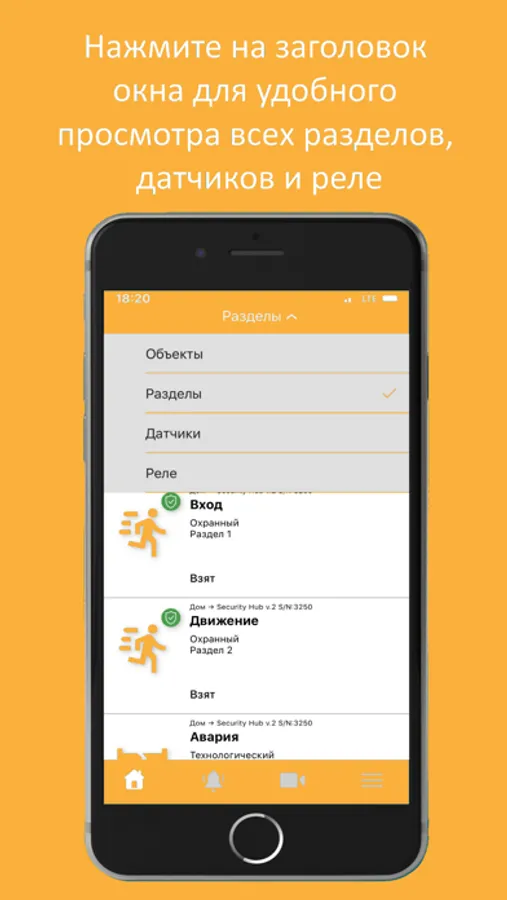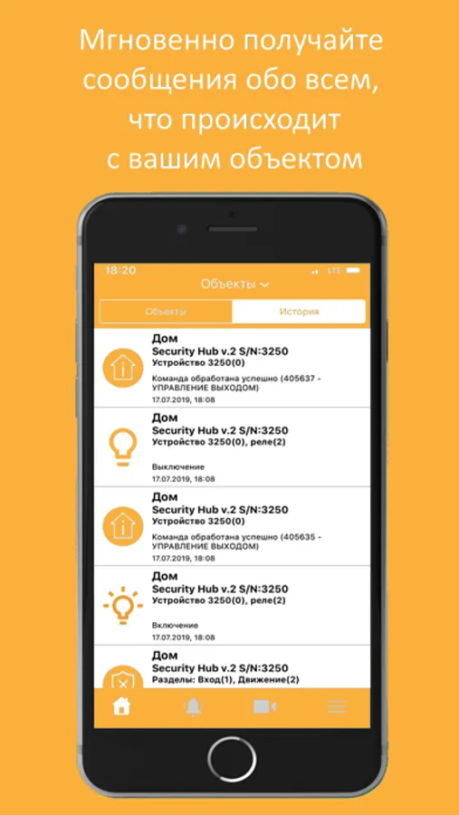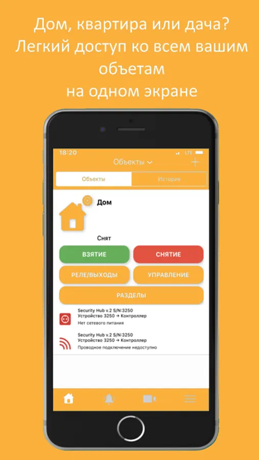 Приложение для IOS-устройств обеспечивает постоянный контроль охраняемого помещения. Вы дома, даже, когда не дома.