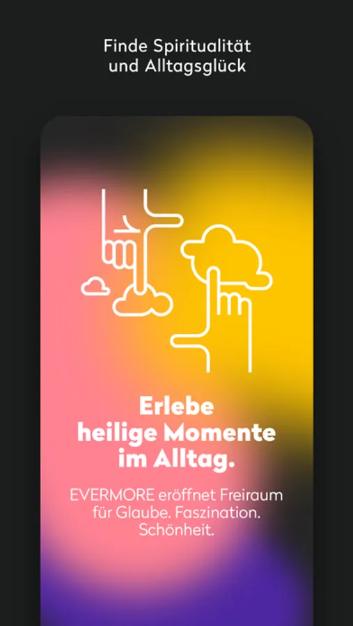 Mehr als 18.000 Menschen haben sich schon auf die Reise gemacht. Evermore ist keine gewöhnliche Meditations-App. Erschaffen, damit du diesen Ort in dir findest, wo du dir selbst und dem Ewigen begegnest.