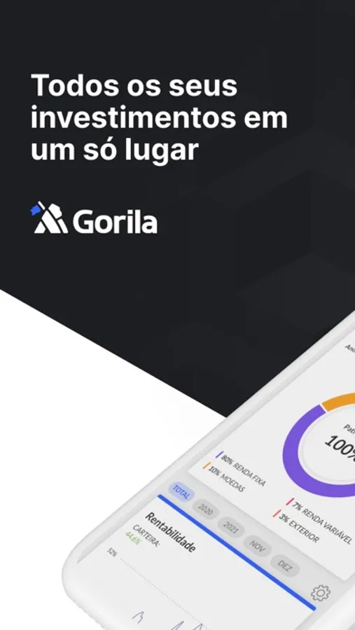 Acompanhe, num único lugar, todos os seus investimentos em renda fixa, ações, BDR, fundos imobiliários (FIIs), criptomoedas, ETF e mais. O Gorila atualiza as cotações e a rentabilidade de cada investimento para você de forma automática. Baixe o app para gerenciar sua carteira de investimentos de forma fácil e prática!