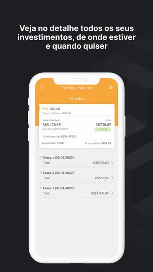 Suas aplicações financeiras em um só lugar! Nosso app consolida e atualiza os valores automaticamente para você acompanhar seus rendimentos diariamente e descobrir o melhor investimento para comprar/vender com lucro. Aproveite a alta da Taxa Selic para investir!