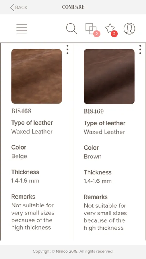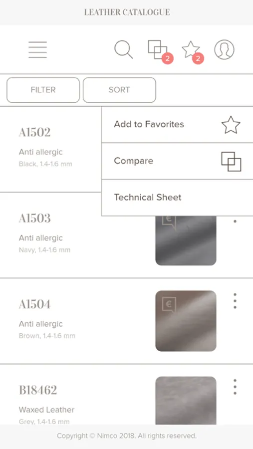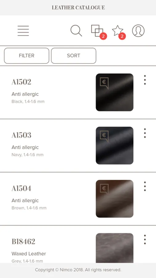 The Nimco E-leather Swatch is an App built to support our clients in choosing the leathers for ordering Nimco Made4You shoes. This app will present the full range of leathers, linings and textile materials necessary to order your custom-made shoes.