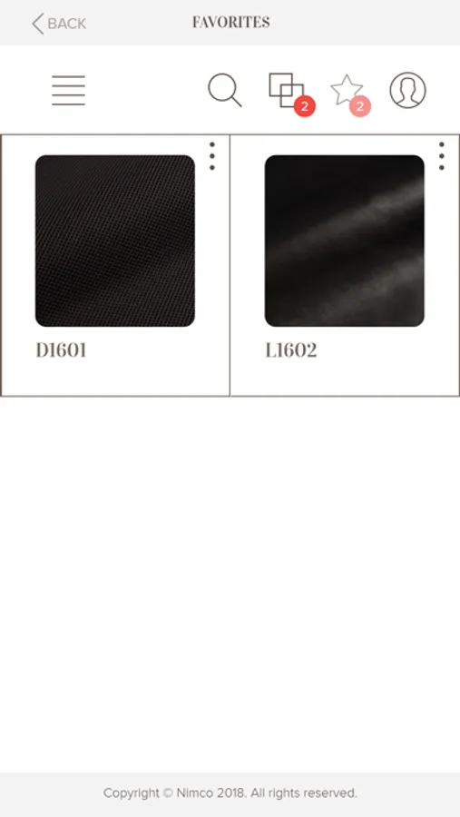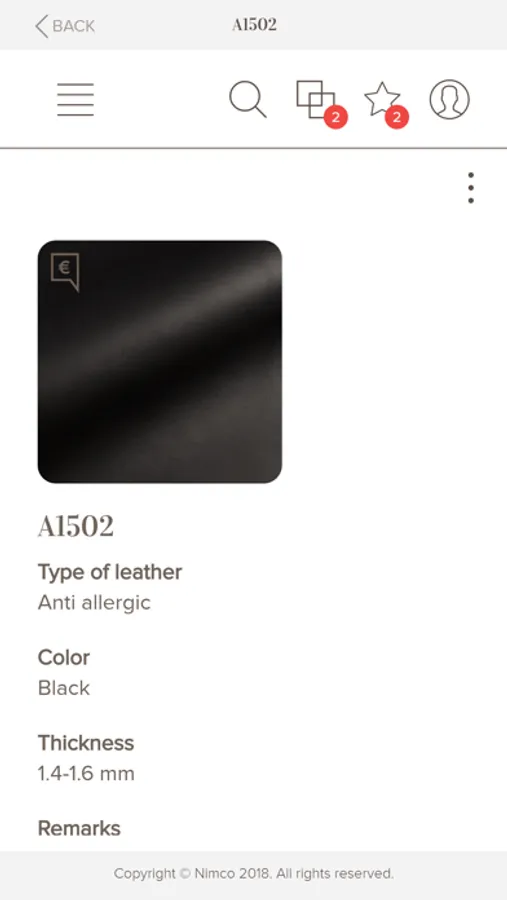 Once you open the App, the complete range is presented in alphabetical order by reference, side by side with a small thumbnail picture. When you enter a reference, you access a description of type, color, thickness, important remarks and the best maintenance practices. On this product sheet you can also see a clearer and bigger image that can also be zoomed in.