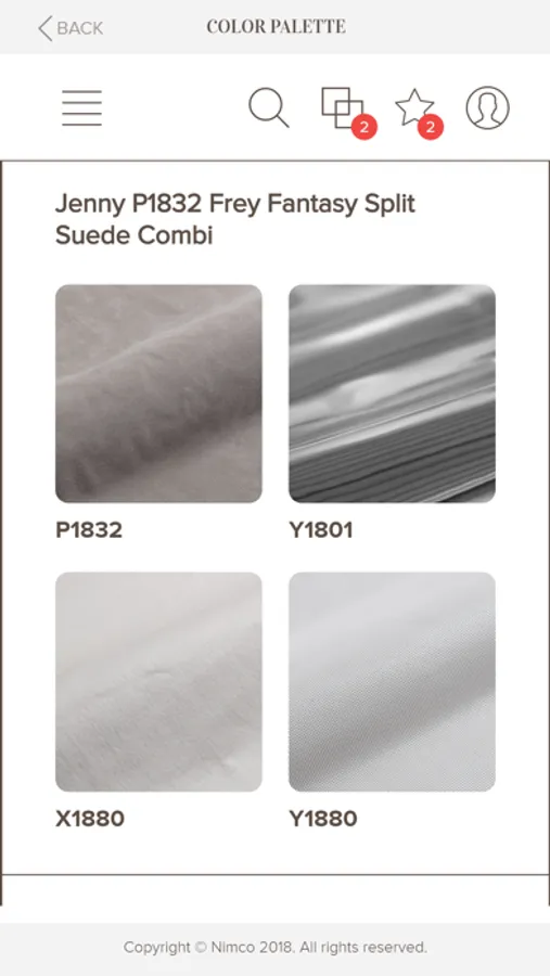 Another interesting feature are the “color palettes”. These are suggestions for the best material combinations from Nimco’s most recent collection book.