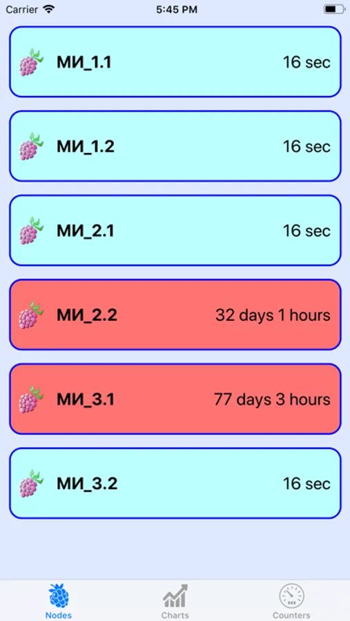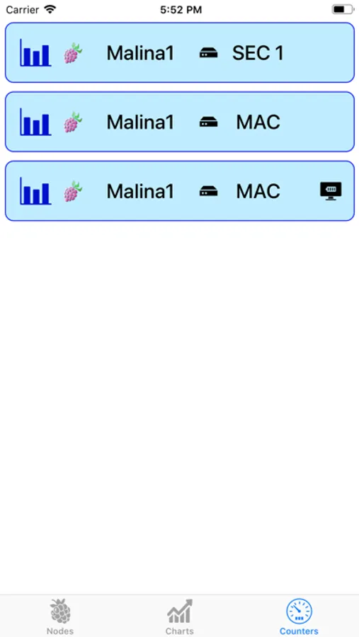 You can monitor several nodes (Malina appliances). For each node you can monitor: