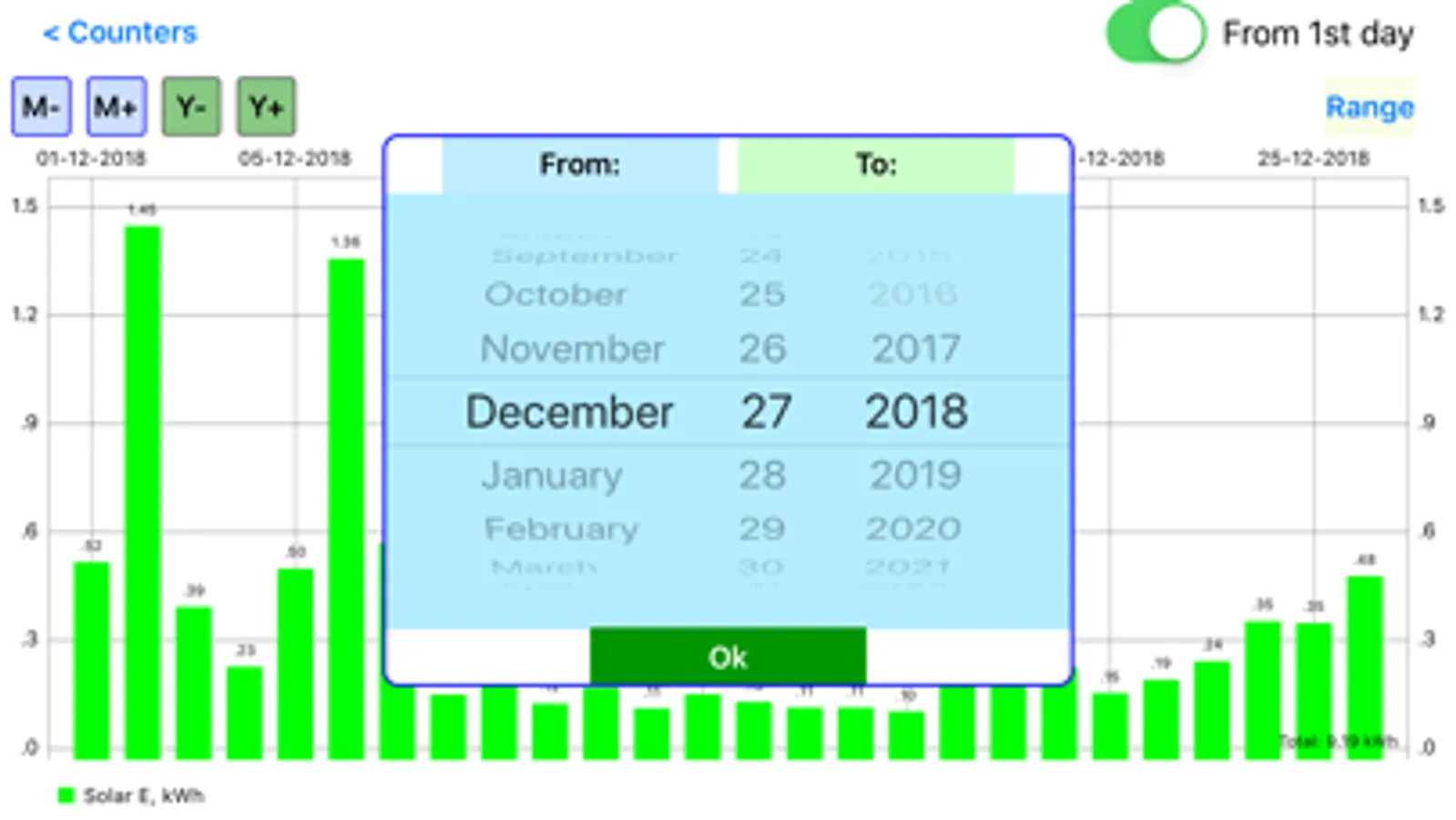 - You can view saved pre set counters by devices' and Malinas' names. You can change data range right on your mobile device.