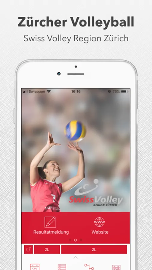 * Optischer Leckerbissen: Dank dem schlichten Design in den Verbandsfarben von Swiss Volley wirkt die App aufgeräumt und übersichtlich - jedes Detail kommt zur Geltung ohne aufdringlich zu sein.