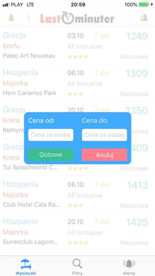 Możesz w aplikacji otrzymywać specjalne oferty z twojego miasta wyszukane przez specjalistów z Lastminuter.pl