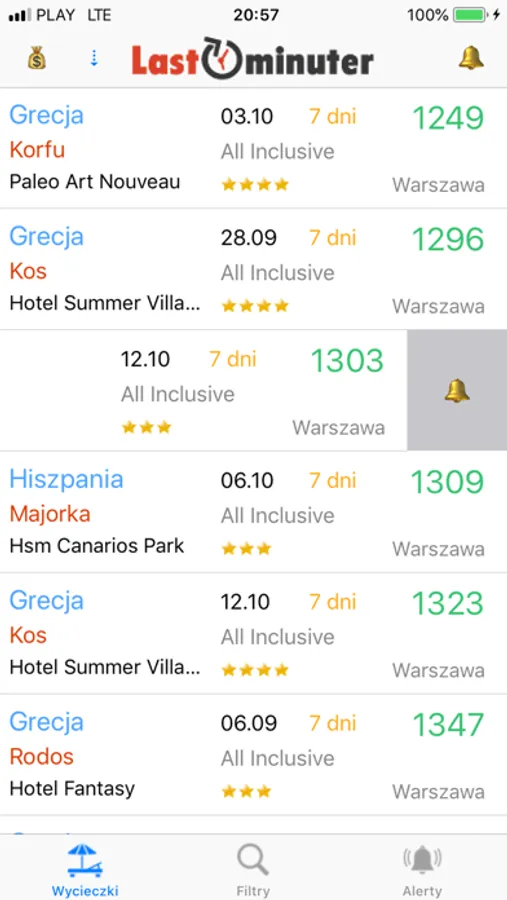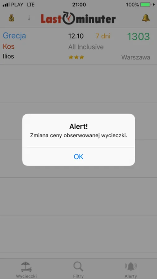 Jeśli znajdziesz interesującą wycieczkę, możesz ją zacząć obserwować i otrzymać alert jeśli zmieni się jej cena.