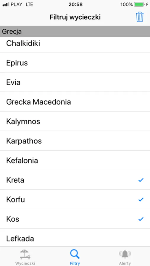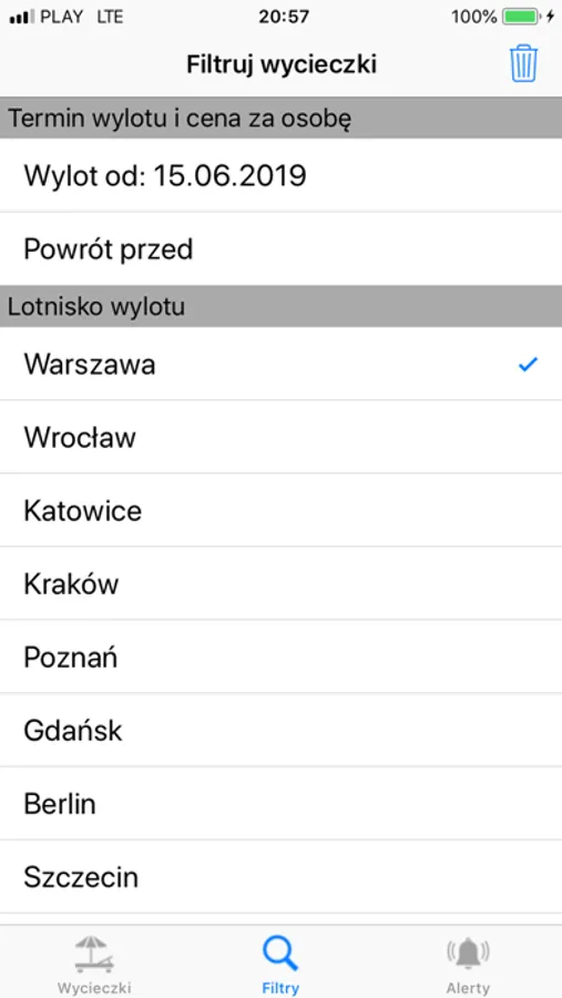 Aplikacja zapamiętuje wybrane kryteria wycieczki (kraj, region, data wylotu, itp.) dzięki czemu nie tracisz czasu na ponownie wyszukiwanie.