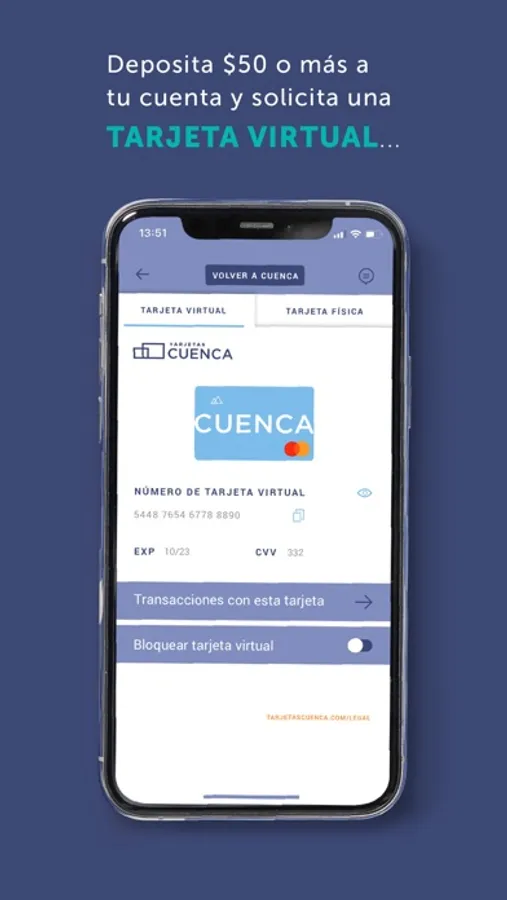 Al abrir tu cuenta Cuenca y depositar $50 MXN o más, recibe una tarjeta virtual con la que podrás realizar compras, suscripciones y acceder a promociones especiales. Si deseas obtener una tarjeta física, escoge tu diseño favorito, deposita $100.00 MXN (costo del envío, incluye IVA) y recíbela en casa.