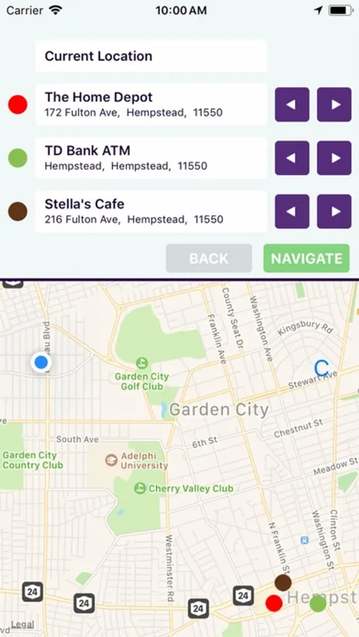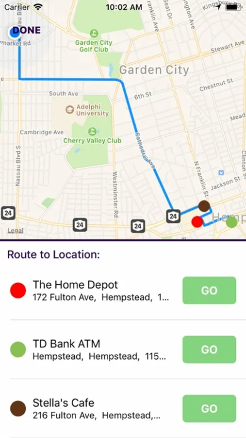 Whether you want to hit a specific grocery chain (like Albertsons) or just the nearest grocery store, OnTheWay will help you find the convenient option, then add it to your route. No more cruising up and down the street searching for a coffee shop or driving around endlessly looking for a hardware store.