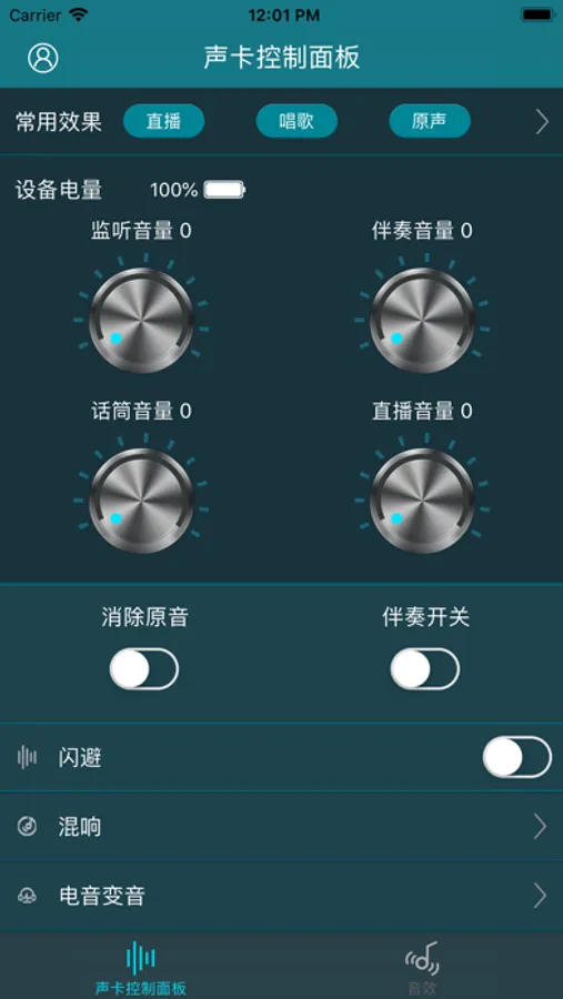 趣声app是专门为途讯智能K歌宝声卡而开发的面板控制工具。主要用于调节K歌宝的设备参数,如设备音量、混响、闪避、均衡器、消音、耳返、伴奏等。K歌宝内置DSP还集成了直播气氛调节音效,内置有多个场景音,如:掌声、笑声、特效声等,让您直播更出奇方便。AI智能语音功能包括天气预报、播放音乐、百科问答、讲笑话、讲故事、翻译、聊天。