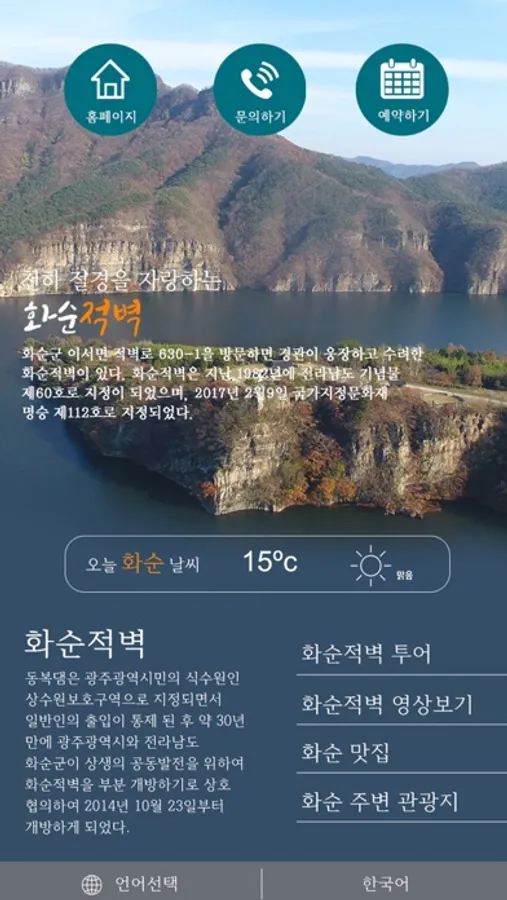 이제 '화순적벽투어' 모바일 앱으로 스마트하게 여행해보세요.