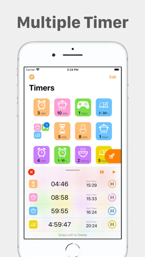 Unlimitedly number of timers by purchasing the full version.