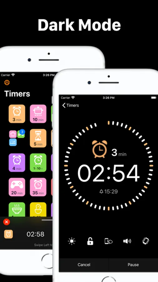 · Convenient options during the countdown, e.g. suppress the brightness of the screen, invalidate Auto Lock and invalidate touch event.