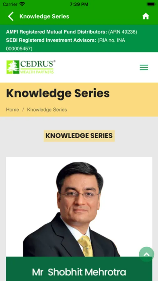 Cedrus Wealth is a app brought to you by Cedrus Consultants Private Limited. This App is for Investors to track their Investment Portfolio and know about Cedrus Wealth .