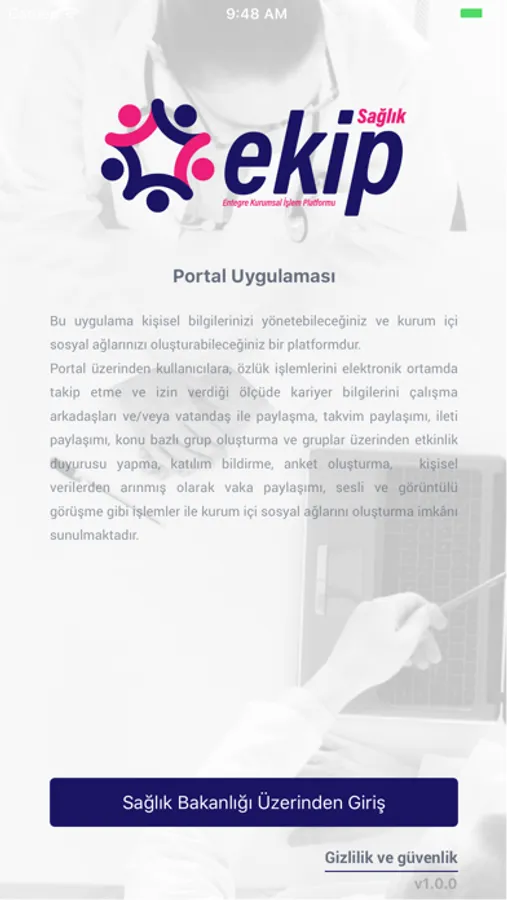 EKİP uygulaması, sağlık sektöründe istihdam edilen tüm sağlık personelinin, kendisi ile ilgili özlük işlemleri elektronik ortamda yürütmesi, sesli-görüntülü görüşme, interaktif eğitim, sosyal medya işbirliği ve vatandaş portallerine bilgi sağlanması için oluşturulmuş bir platformdur.
