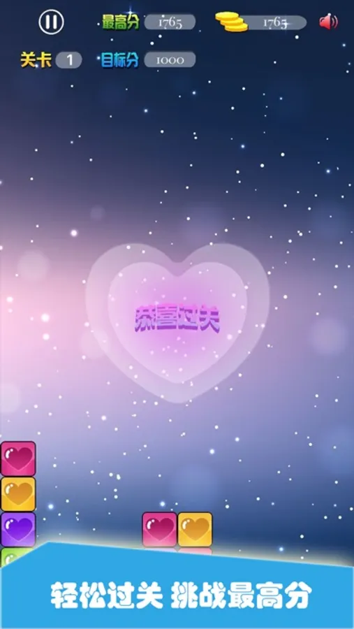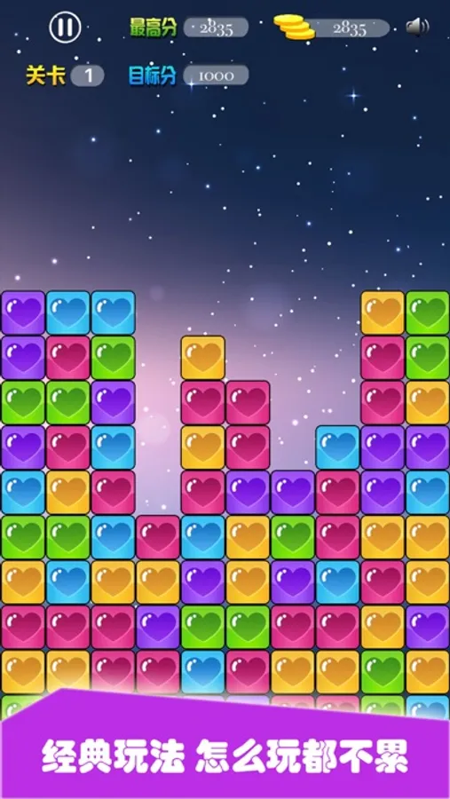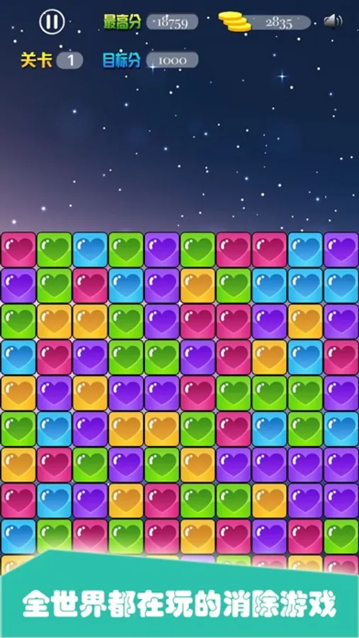 最简单,最原始操作,只要点击两个以上颜色相同的心心,就能消除这些相连心心,根据消除的心心的数量获取相应的分数,同时消除的心心越多,获取的分数越多,分数到达一定额度就可以顺利进入下一关。