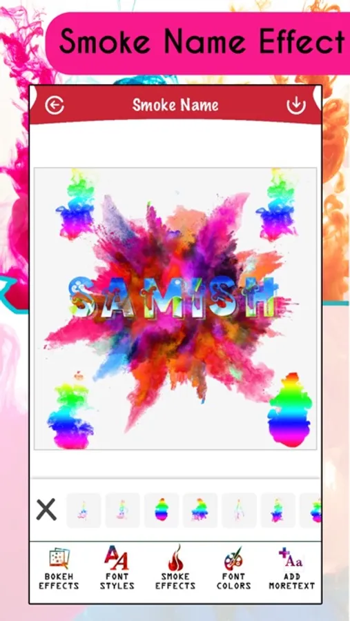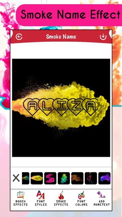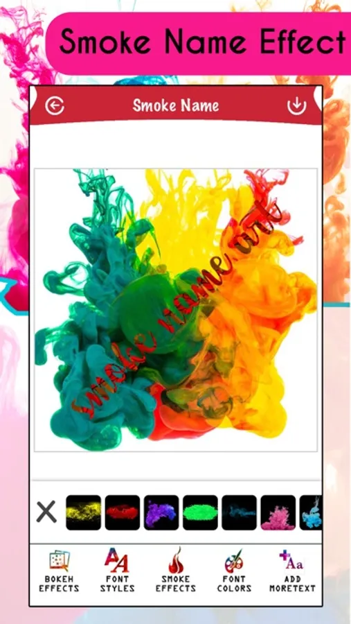 This App contains a large variety of fonts, emojis and unique designer smoke effects which are all you can use.