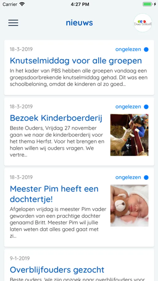 Ouders bekijken de nieuwsfeed van hun basisschool makkelijk via de telefoon en kunnen direct reacties plaatsen.