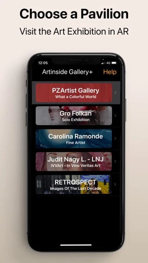 Using the Artinside Gallery app, wherever they are and at any time, visitors can access the individual Pavilions, each consisting of 5 rooms and dedicated to an artist or an art collective, and experience their artworks in life-size, as if they were hanging on the invisible walls of a real art gallery.