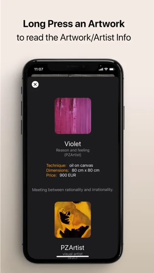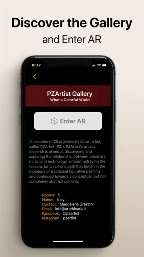 Artinside Gallery is the first art gallery without walls: an original and avant-garde form of exhibition design that allows a limited number of artists selected by Artebinaria to exhibit and promote their artworks using Augmented Reality (AR).