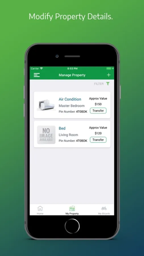 Users can easily manage all their property by setting up room by room inventory, and continue to add items to securely link them to the user. User can add multiple PINs from their profile section of account. If property is sold, user can transfer property to new user from mobile app.