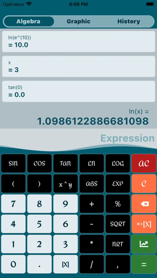 Calculator with history and curve plotting