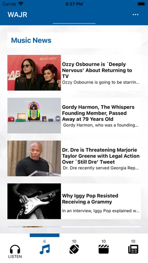 Get all the Live & Local information you have come to expect from WAJR. Catch up with the latest in Music News. Find out what’s going on in Hollywood. Stay up on events in the Sports world. You get all the information you want right on your mobile device.