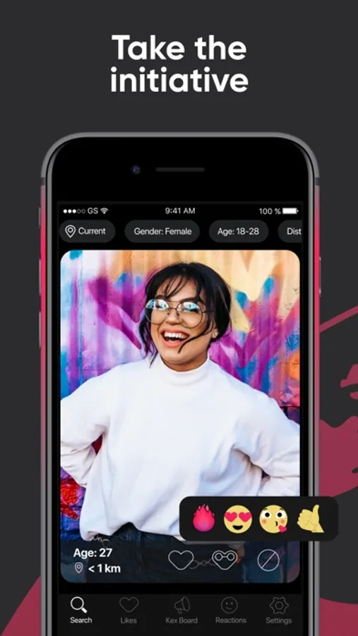 * Kex lets you see who is around right now. With no limits, just choose a gender, age and distance in search filters, that's it.