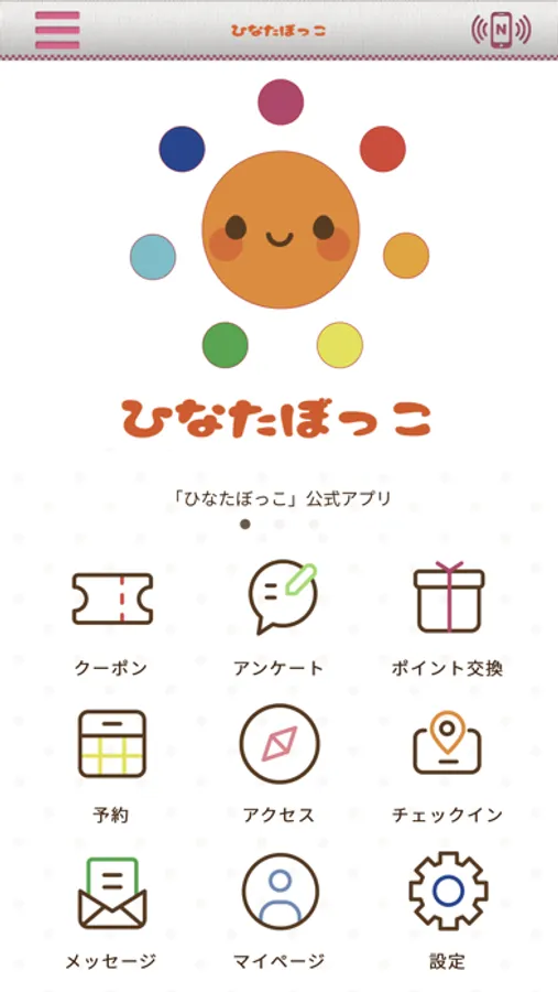 このアプリでは、ひなたぼっこの最新情報の受け取りや便利な機能を使う事ができます。