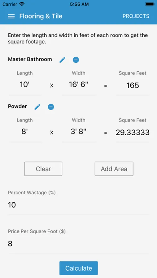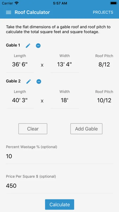 Designed for contractors of all types, ContractorCalculator is the easiest way to calculate and save important calculations while in the field. Handle on-the-go calculations like square footage, measurement conversions, and fraction math to trade specific calculations like amps to watts, drywall footage, roof footage, and wire size calculations. Once calculated, simply save them to projects to retrieve at anytime.