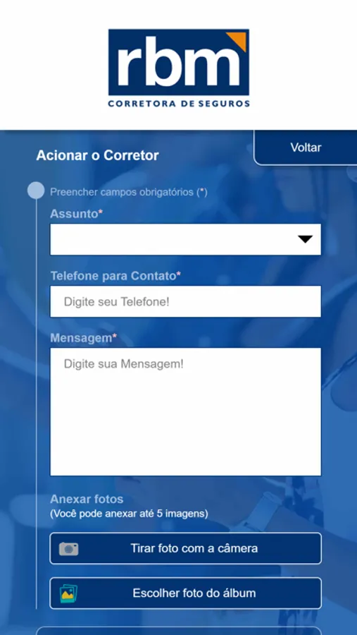 O aplicativo RBM permite você possa consultar no seu smartphone, de maneira rápida, simples e intuitiva, as principais informações dos seus seguros de Auto, Residência e Vida, E&O e Fiança Locatícia, Vida e Outros ramos que foram contratadas conosco.