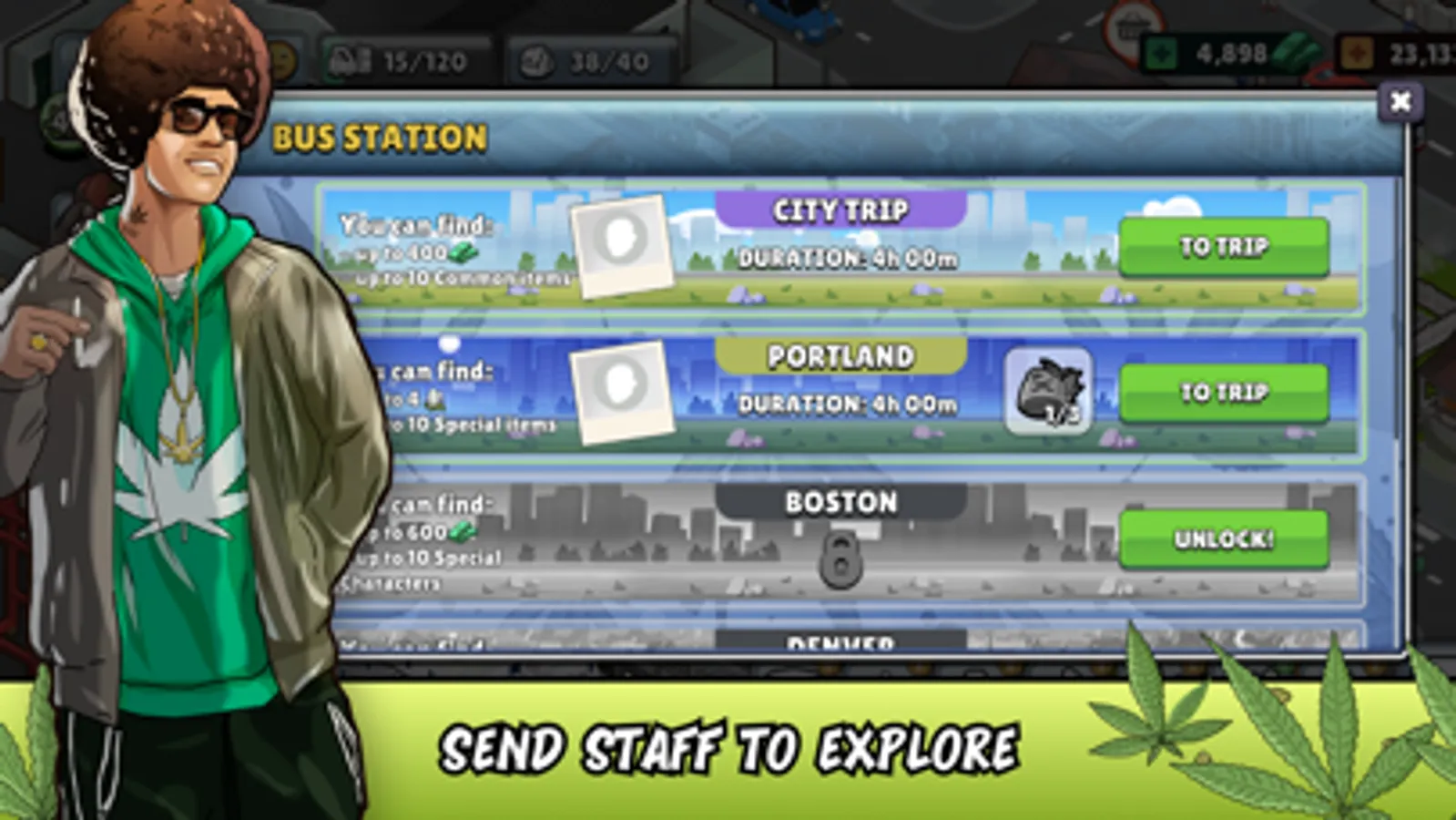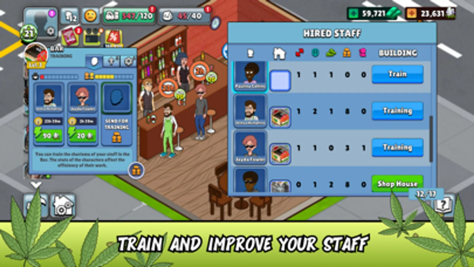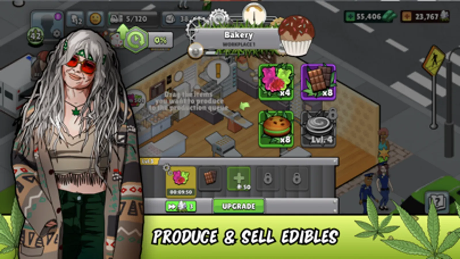 All characters has their own strengths and weaknesses in the weed industry simulator. You will need to improve your staff to increase efficiency. Then you will need to build a network of dispensaries to become the largest dealer in your city. Slowly but surely you will move towards becoming a hemp tycoon. Use special items to increase productivity. Water and improve your weed to increase the amount of buds on your farm pots.