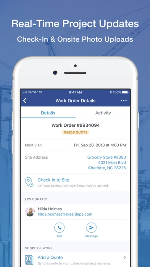 The LPS Mobile Work Order Manager app allows for check in & out and full work order management from work order receipt to receipt of payment: