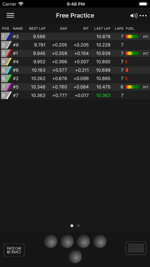 - get informed about important events, such as fastest laps or low fuel conditions, by personalized voice messages.