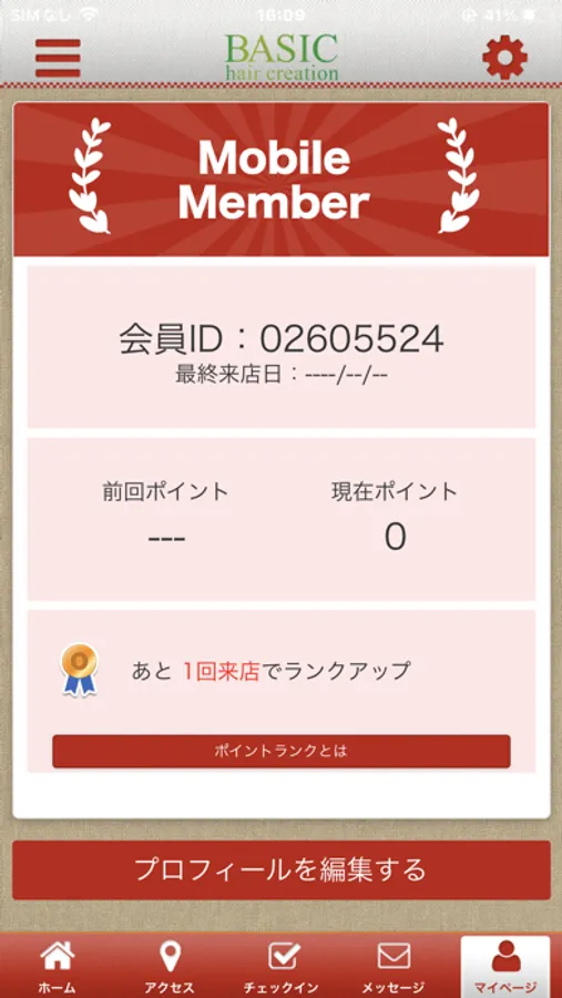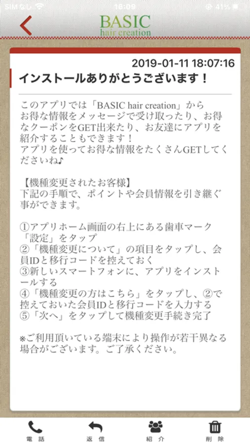 BASIC hairのアプリをSNSを通じてお友達に紹介する事ができます。