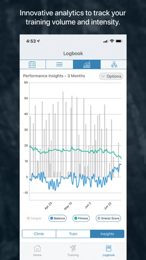 Gneiss is the ultimate training tool for climbers. It's like that chalky old notebook at the bottom of your climbing bag grew a brain, learned how to use spreadsheets, and decided to help you become a better climber.