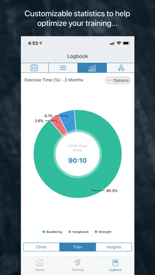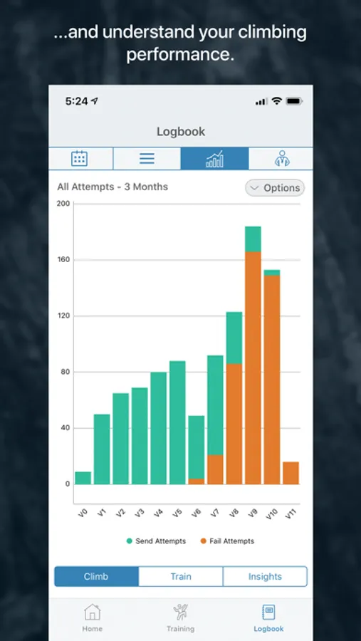 • Innovative analytics and statistics to help you track progress, optimize your training, and understand your climbing performance.