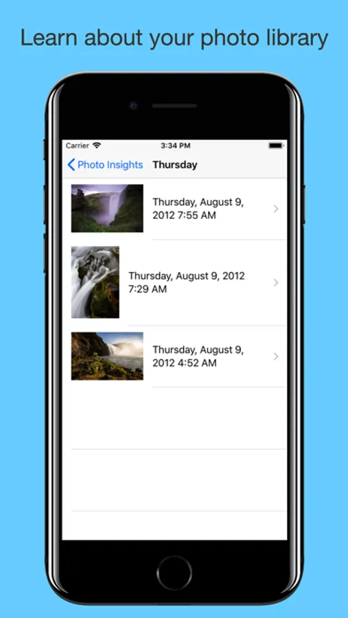 Learn about when and how you take your photos. View by time, day, month, year, orientation, mornings, afternoons, weekends and more!