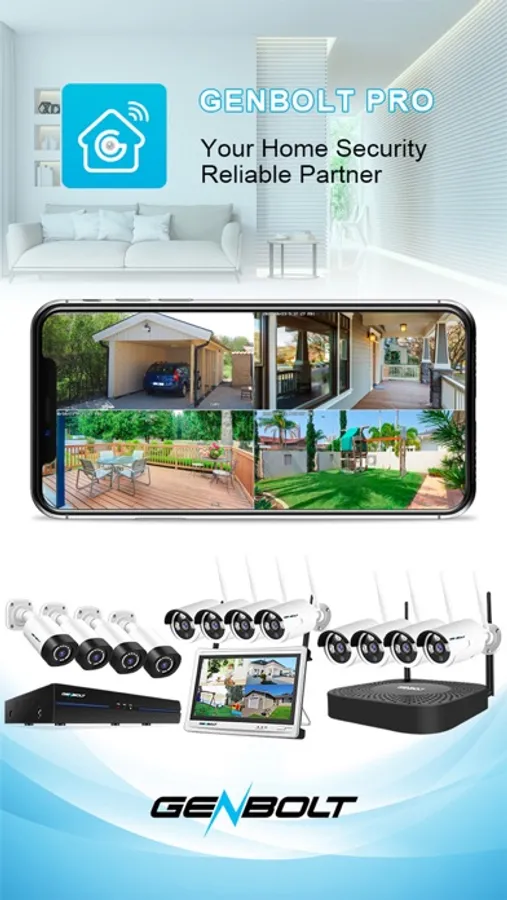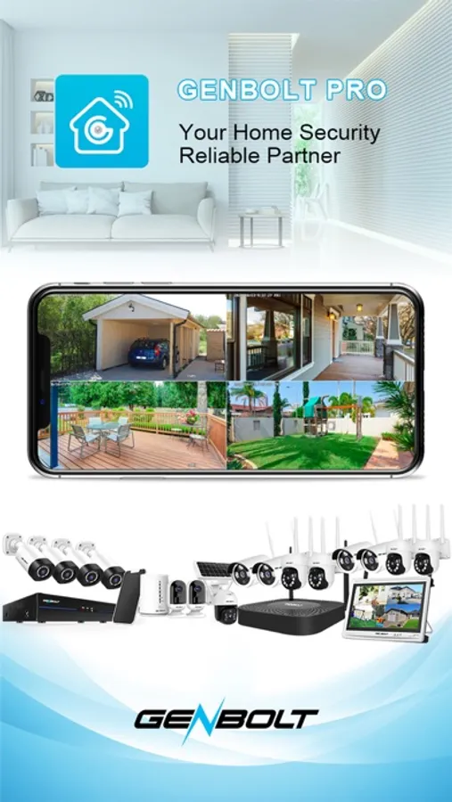 The GENBOLT PRO app is designed to work with Security Camera System(4ch, 8ch, 16ch,32ch), which support Cloud P2P function. It allows you to live view your cameras remotely.