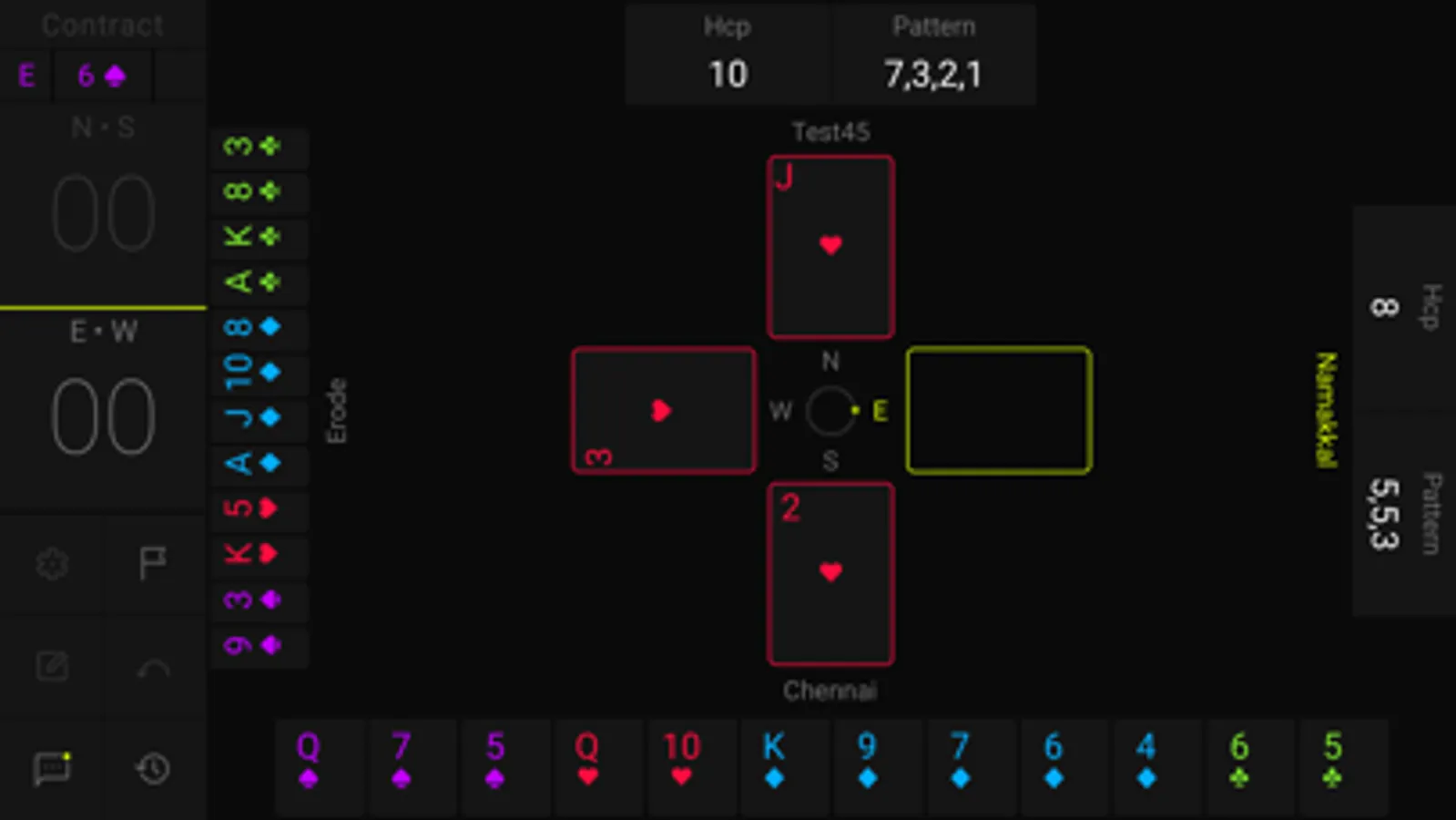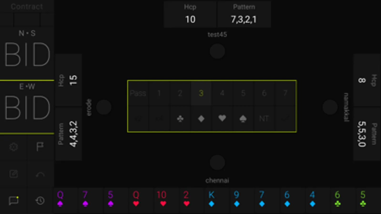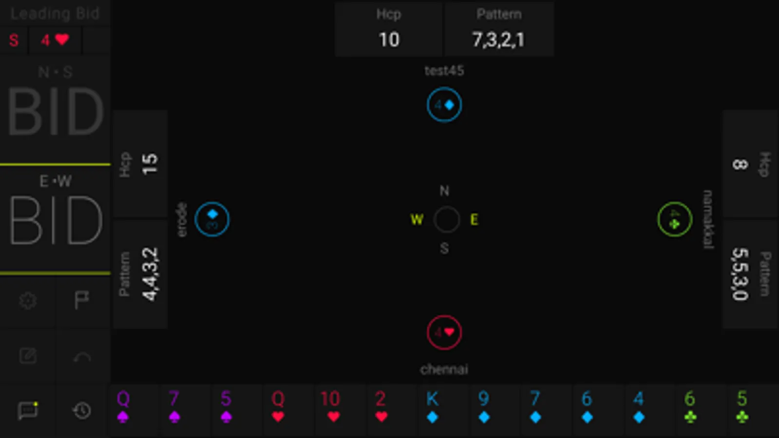 HOOL is a card game played by 4 players sitting in North, East, South and West seats. North and South are partners playing against East and West. The game goes in three stages. In the first stage, all players share two pieces of information about their hand. In the second stage, there is an auction to determine which player has bid the highest (for the total number of tricks and whether in Trump or No Trump). The highest bidder is known as the declarer. The third stage is the play of the cards where the declarer tries to make his contract while the defenders try to deny him.