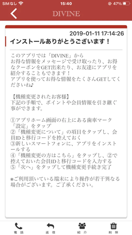このアプリでは、DIVINEの最新情報の受け取りや便利な機能を使う事ができます。