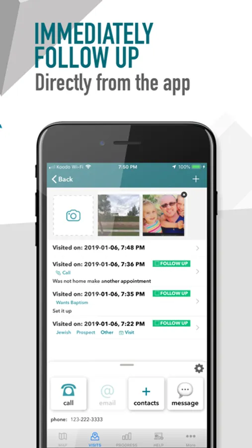 The live map allows you to see your own location, as well as detailed address information for homes around you, making it easy to go door to door and make meaningful contacts. If you need to, you can even change address information on the go and see which houses you’ve already visited, or those which require a follow-up.