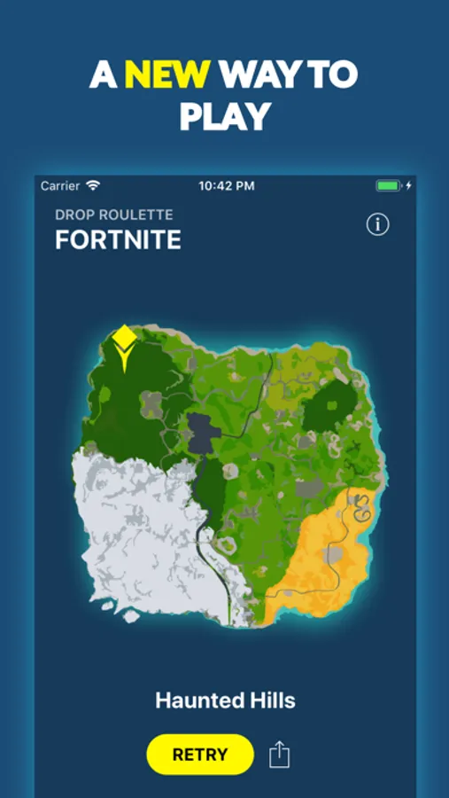 With Drop Roulette you’ll never have to use those precious brain cells to argue with your mates about where to drop. Just tap one button and let fate decide! No take backs, no indecision, just pure unadulterated Fortnite Drop Roulette.