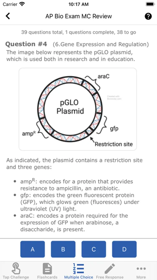 Multiple choice questions make learning AP Biology effective and efficient. If you get the answer right, you get immediate positive feedback. If you get it wrong, you get a hint about the correct answer. Study the hint carefully, because after a random interval, you’ll get the question again.
