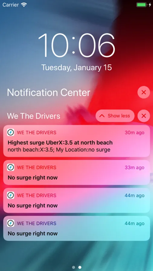 - Keep you informed the highest surge and the surge nearby via push notifications