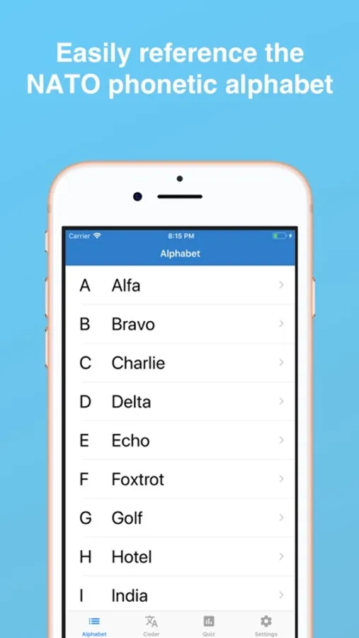 Nato Phonetic Alphabet ICAO helps you easily memorize phonetic code words for the 26 letters of the alphabet. Additionally, you can easily convert your own words or sentences into Nato phonetic alphabet code words.