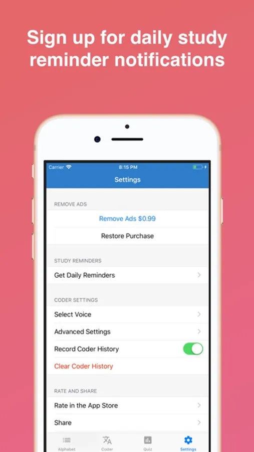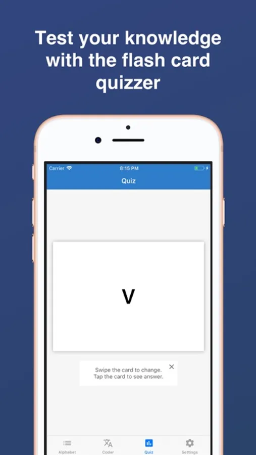 • Use the quiz tool to flip through flashcards to test your knowledge on alphabet symbols