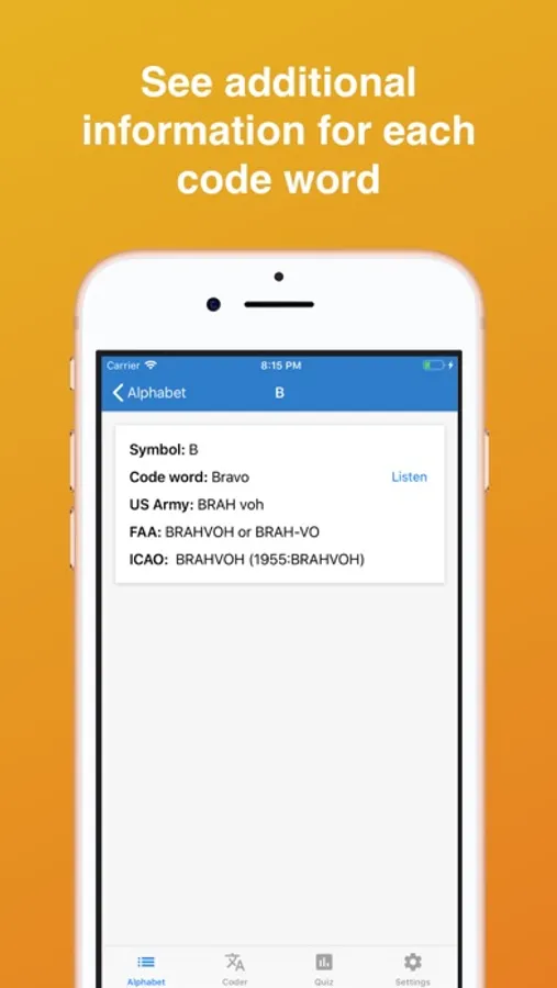 • Convert your own words or sentences into NATO phonetic alphabet code words for quick reference on the correct pronunciation